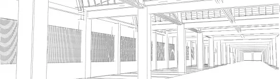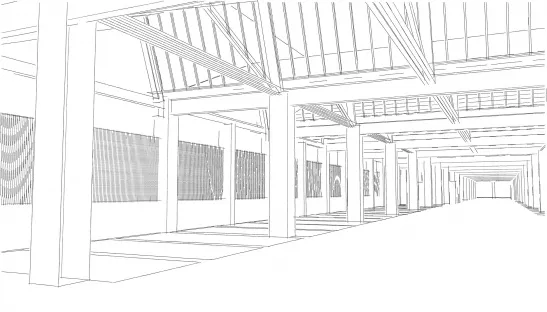 Ce bâtiment abritant à l’origine les réparations des moteurs d’avions sera couvert d’une peau d’écailles jouant avec la perspective.