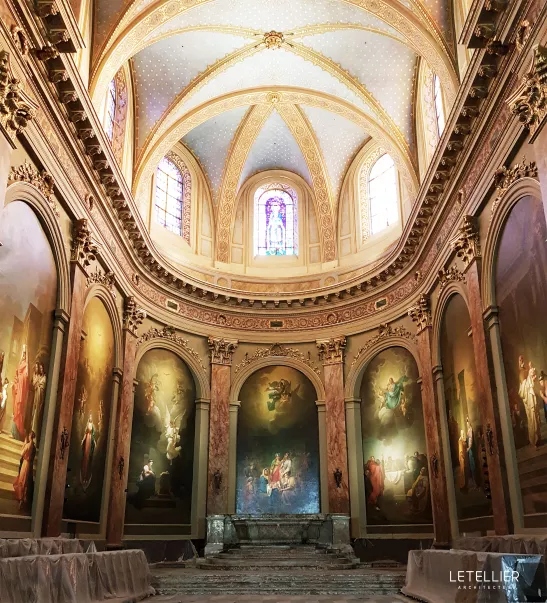 Les travaux concernent la restauration des parties extérieures, telles que les façades, la charpente couverture, ainsi que la restauration des parties intérieures tels que les carreaux en terre cuite, pierre ou marbre, peinture murales, et peinture sur voute. Cette restauration permettra également la mise à niveau du bâtiment vis-à-vis des normes actuelles : accessibilité PMR et sécurité incendie.