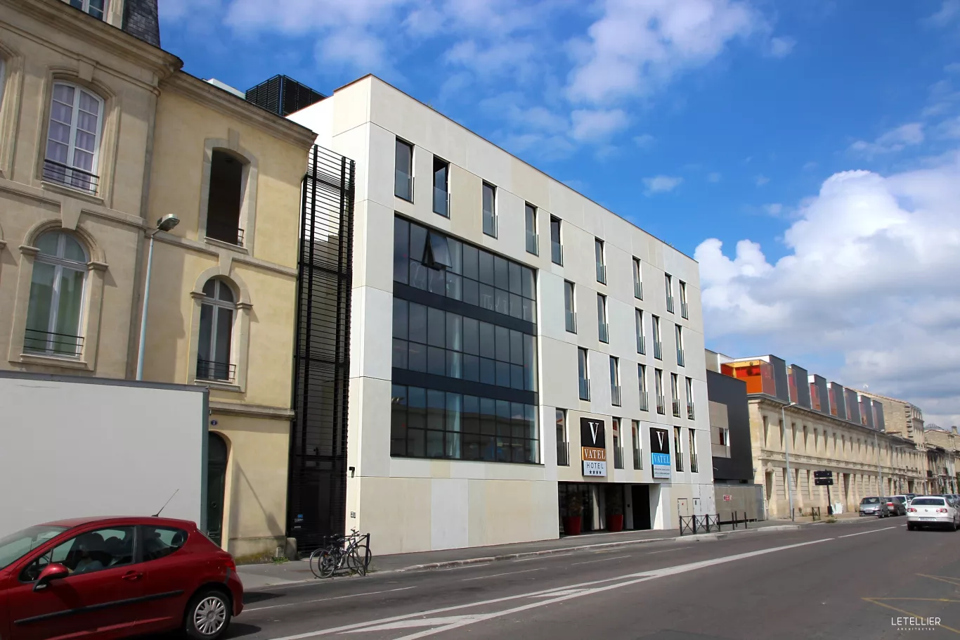 La façade du bâtiment, tissage entre couleur et matière, offre une subtilité entre tons et ouvertures. Composée de béton d’agrégats de trois nuances différentes, elle fait écho aux teintes des pierres des facades présentes sur les quais, classées au patrimoine mondial de l'Unesco.