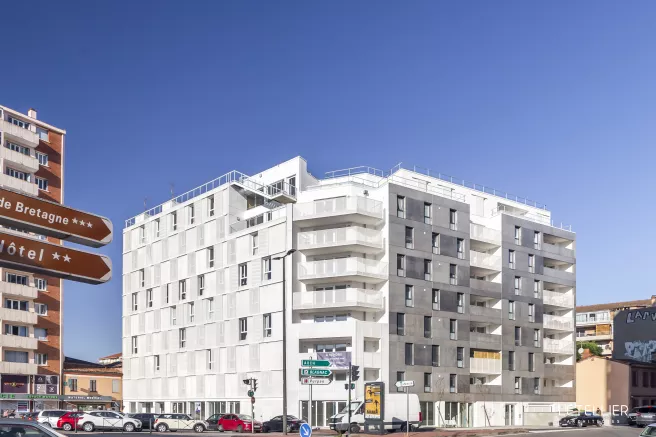 Positionné sur un des axes principaux d’entrée de ville, place Barrière de Lombez, ce projet de 122 logements étudiants a pour vocation de requalifier l’espace public, en accord avec la mutation récente du quartier. Il a été conçu par l'agence ŒCO Architectes et réalisé par l'agence Letellier (également architecte en mission complète de l’immeuble mitoyen : le "KUB"). Ainsi, les deux projets, complémentaires, forment deux volumes simples en R+8. Un langage commun a été choisi sur le soubassement, les décrochés, et certains garde-corps, via l’utilisation d’une seconde peau en métal déployé blanc et de vitrage toute hauteur en RDC.