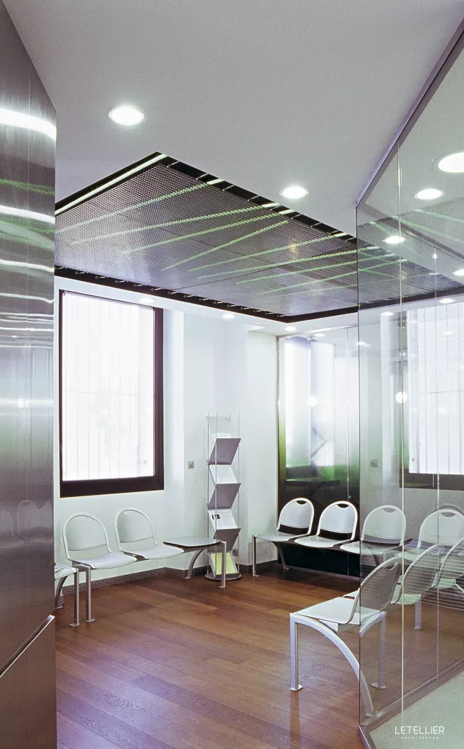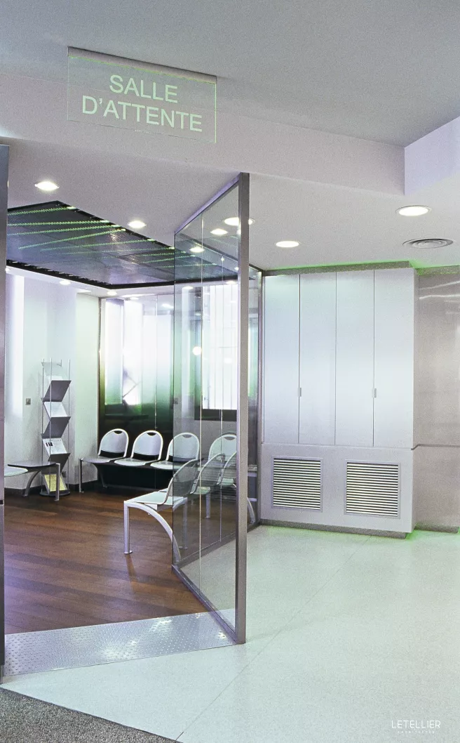 Restructuration du pôle bactériologique et réhabilitation de la salle d'attente d'un laboratoire de biologie médicale. Cet espace destiné à l'accueil du public est à l'image du lieu, résolument technique et moderne, doté d'une touche chaleureuse et apaisante.